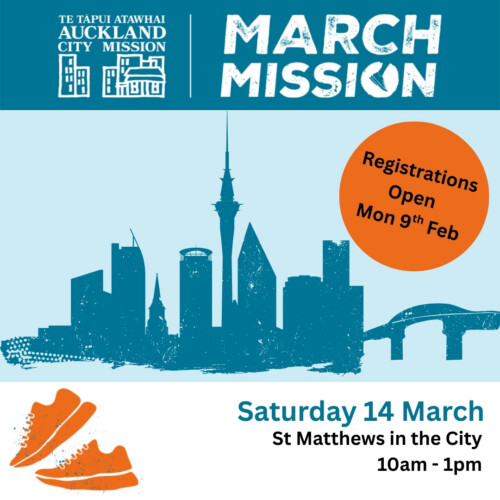 The Auckland Anglicans version of March Mission will run on Saturday 14th March. So we can maintain the joy, the challenge and the community building benefits of walking together, the team have arranged with St-Matthew’s-in-the-City that we can finish our walks there. There will be refreshments and a place to rest in the cool of the church after your walks. The challenge is, your groups will need to arrive by no later than 1.30pm!